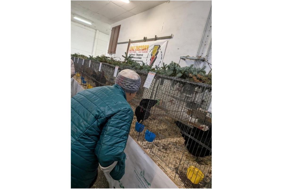 Mit lautem Kikeriki wurden wir empfangen. Überall war Geflügel, das wir ganz genau betrachteten. Manche waren sogar fürs Putzen geeignet, weil sie so einen buschigen Schwanz hatten. Die Hühner und Tauben waren wunderschön und manche hatten sogar schon Schleifen an ihren Käfigen hängen.